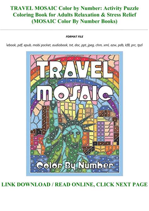 Read TRAVEL MOSAIC Color by Number: Activity Puzzle Coloring Book for Adults Relaxation & Stress Relief Doc